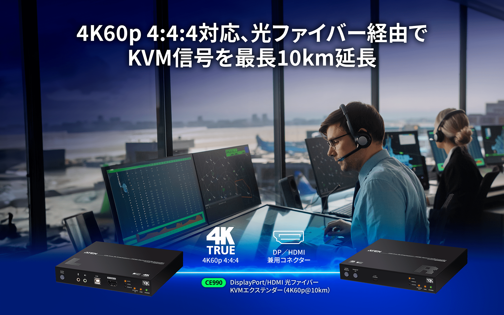 CE990¤Ï¡¢USBÂбþ¤ÎDisplayPort¡¿HDMI¸÷KVM¥¨¥¯¥¹¥Æ¥ó¥À¡¼¤Ç¤¹¡£¸÷¥Õ¥¡¥¤¥Ð¡¼·Ðͳ¤ÇKVM¿®¹æ¤òºÇÂç10km¤Þ¤Ç±äŤǤ­¡¢HDCP 2.3¤Ë½àµò¤·¤¿4K60p 4:4:4¤Î±ÇÁü¤òÅÁÁ÷¤·¤Þ¤¹¡£DisplayPort¤Þ¤¿¤ÏHDMI¤ËÂбþ¤·¤¿¥³¥ó¥Ü¥³¥Í¥¯¥¿¡¼¤òºÎÍѤ·¡¢¥í¡¼¥«¥ë¡¦¥ê¥â¡¼¥Èξ¦¤Ç±ÇÁü½ÐÎϤòÁªÂò¤Ç¤­¤ë¤¿¤á¡¢ÀßÃÖ¤â´Êñ¤Ç¤¹¡£¹âÀººÙ¤Ê±ÇÁü¤Ë²Ã¤¨¤Æ¡¢RS-232¡¢USB 2.0¼þÊÕµ¡´ï¡¢DisplayPort¡¿HDMI¤Î¥Ç¥¸¥¿¥ë²»À¼¡ÊDolby TrueHD¡¢Dolby Digital Plus¡¢DTS-HD Master Audio¡Ë¤Ë¤âÂбþ¤·¡¢1Ëܤθ÷¥Õ¥¡¥¤¥Ð¡¼¤Ç¿ºÌ¤Ê¿®¹æ¤ò±äŤǤ­¤Þ¤¹¡£CE990¤Ï¡¢¸òÄÌ¡¢À½Â¤¡¢¸ø±×»ö¶È¤Ê¤É¡¢½ÅÍפÊÀ©¸æ´Ä¶­¤ËºÇŬ¤ÊÀ½ÉʤǤ¹¡£